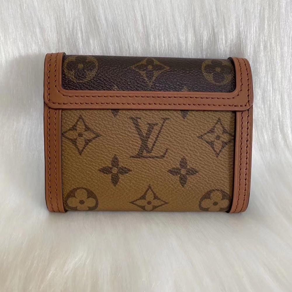 メゾンを象徴するハンドバッグ「ドーフィーヌ」から着想を得た「ポルトフォイユ・ドーフィーヌ コンパクト」。モノグラム・キャンバスとモノグラム・リバース キャンバスで丁寧に仕立て カーフレザーでトリミングを施し 「ドーフィーヌ」ならではのマグネットスタイルの留め具をあしらいました。紙幣を収納できるロングポケット サイドにはファスナー開閉式のコインポケットを添えた 機能的なアイテムです。