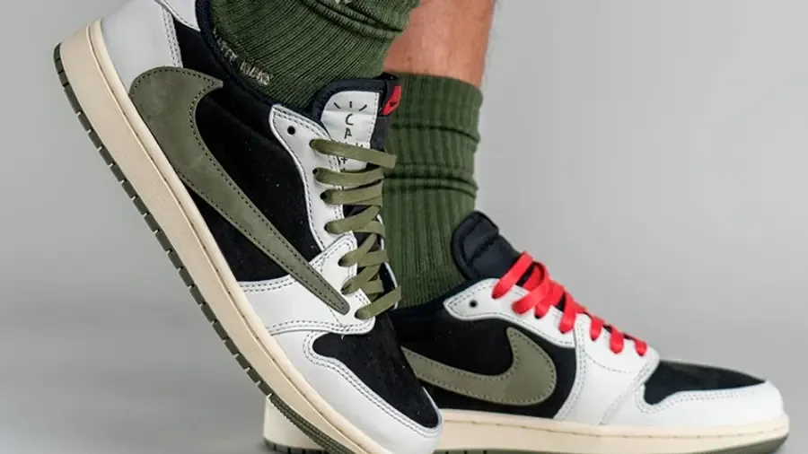 Travis Scott x Air Jordan 1 Low OG WMNS “Olive” はプラスサイズでリリースされ、コラボレーションを記念して 3 セットのシューレースと特別なパッケージが特徴です。