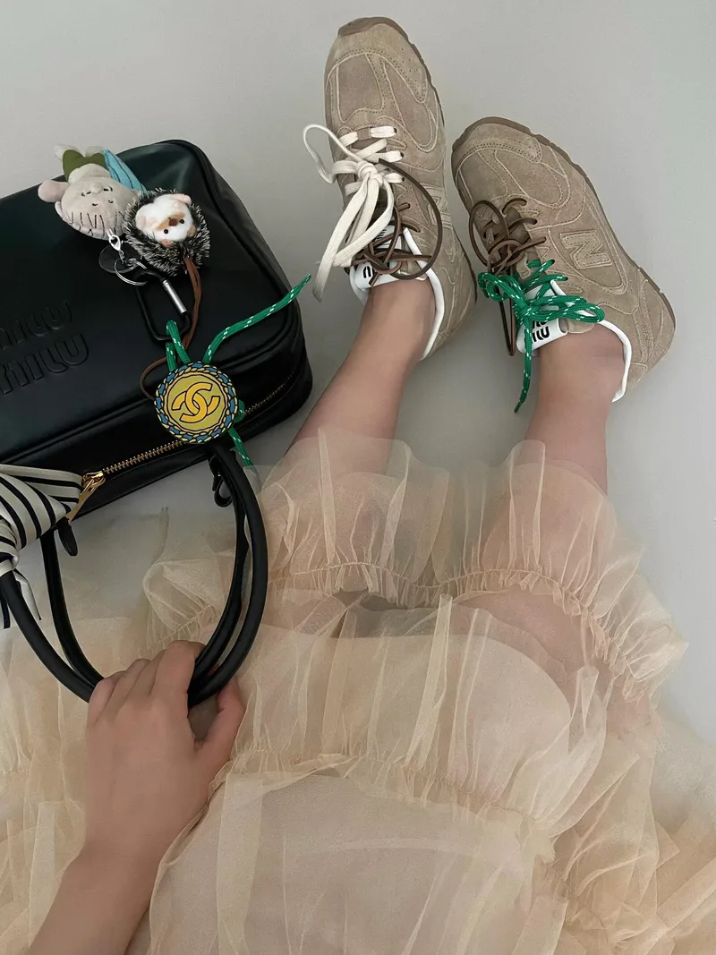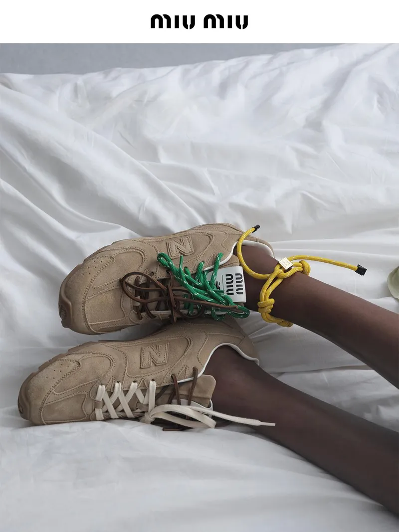 ミュウミュウとNew Balanceのコラボレーションにより実現したエクスクルーシブなスタイル。従来の構造を一新し、遊び心のある素材で再解釈した超軽量スニーカー。MIU MIU ロゴがアイコニックな魅力を添えています。